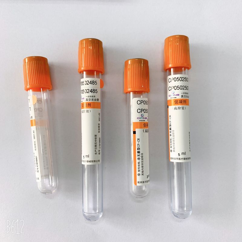 Clot activator tube is used in the blood collection for biochemistry and immunology in medical inspection. It is suitable for wide range of operating temperature. With special treatment, the tube inner surface is very smooth where high-quality coagulant sprays uniformly. The blood sample will completely contact with coagulant and clot within 5-8min. High-quality serum thus is obtained by later centrifugation, free from the cracking of blood corpuscle, hemolysis, separation of fibrin protein, etc. Hence the serum can meet the requirements of fast clinic and emergency serum test.
